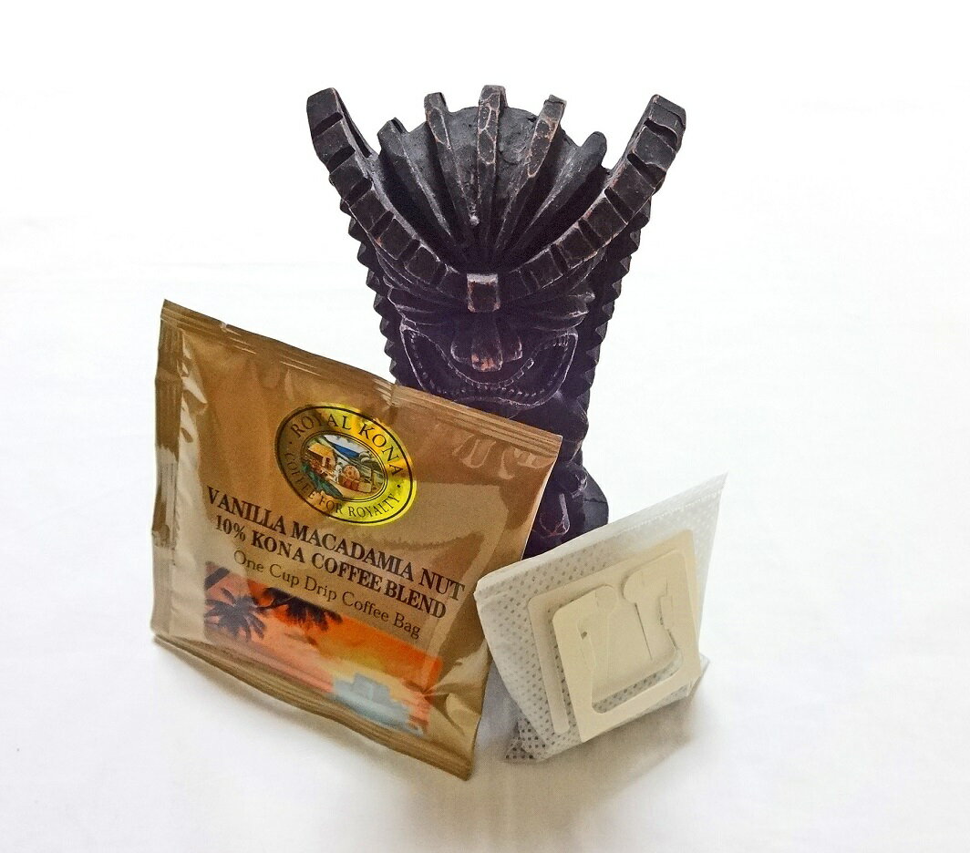 【賞味期限】2019年6月1日 【保存方法】直射日光を避け、冷暗所にて保存 【輸入・製造元】Royal Kona coffee 【内容量】0.35oz(10g) 10%KONA 【原材料】10%KONA coffee ミディアムロースト・中挽き 【生産国】ハワイ・アメリカロイヤルコナコーヒーの、ワンカップ・ドリップコーヒーバッグです。